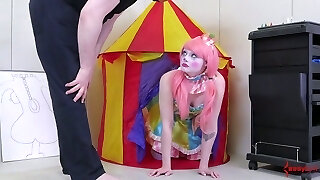 Bootyful female clown gets spanked and fucked hard in taut assfucking hole