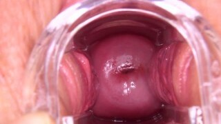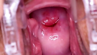 Insertion Ball Butter in Cervix Pussy Speculum. Cum in Uterus
