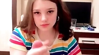 Hot huge-chested girl with immense honkers sees the man having sex, starts masturbating and then offers her body to him, once he is finished