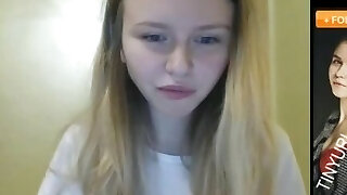 Stunning blonde teen takes off her pantyhose on webcam