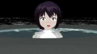 超级热日本若虫得到发挥在游泳池和蹂躏的岩石硬