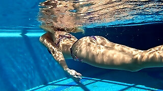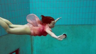 俄罗斯游泳的女孩丽娜水星演示脱衣舞下的水