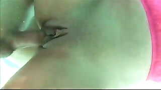 美味的黑头发的女孩拿起游泳池和漱口一个spunk泵
