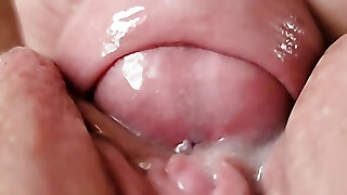 feinste nahaufnahme unrasierte vagina eindringen. fleischiger jism fließt in den cooter. zärtliches fickfest