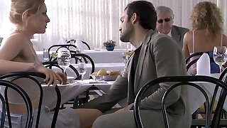 kurvige blonde milf mit großen titten, die sich nach ficken sehnt, verführt einen concierge, um seinen schwanz auf dem sofa zu genießen