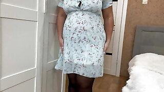 super sexy brünette mädchen in schwarzen strümpfen verführt mich mit ihren kurven und wir beginnen unser freches bumsen
