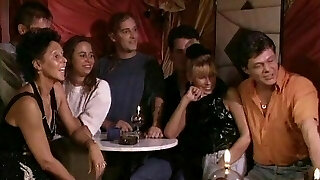 große schwänze in vier lustvollen milfs lecken sich, bevor sie von jungs in einer orgie begleitet werden
