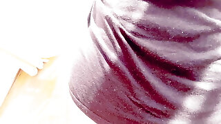 Cute girlfriend and her little pussy under short shorts. Pussy peeks out of the shorts. Sweet baby is loving.