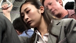 Japanese brown-haired is frequently traveling by bus, because someone always gets to fuck her brains out