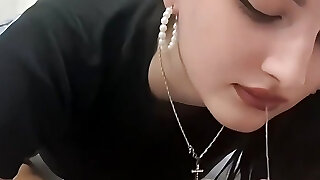 Cute bitch with diminutive bra-stuffers sucks cock and fucks with an older man until he creampies her