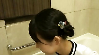 A beautiful 18 year senior Japanese woman with black hair. Blowjob and shaved creampie sex, uncensored